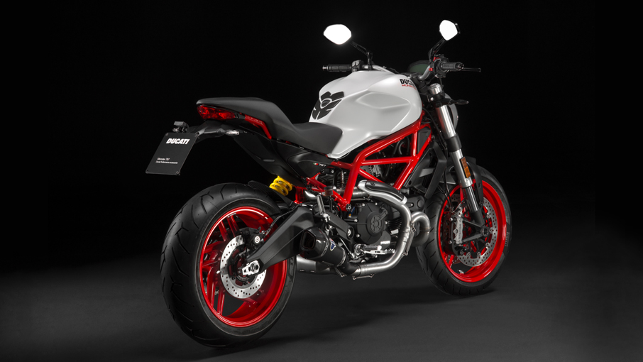 新款怪兽797设计完美地融合了宽车把、油箱、编织框架、Desmodue双缸引擎和双面摇臂——灵动的线条传达着运动感,第一眼看上去便自信满满。新涂装令怪兽797的风格新颖且具独创性。