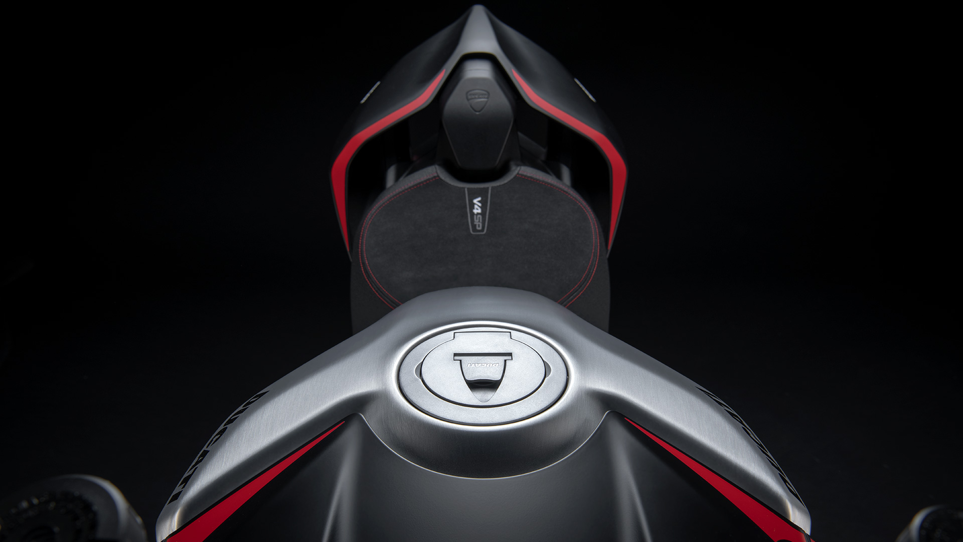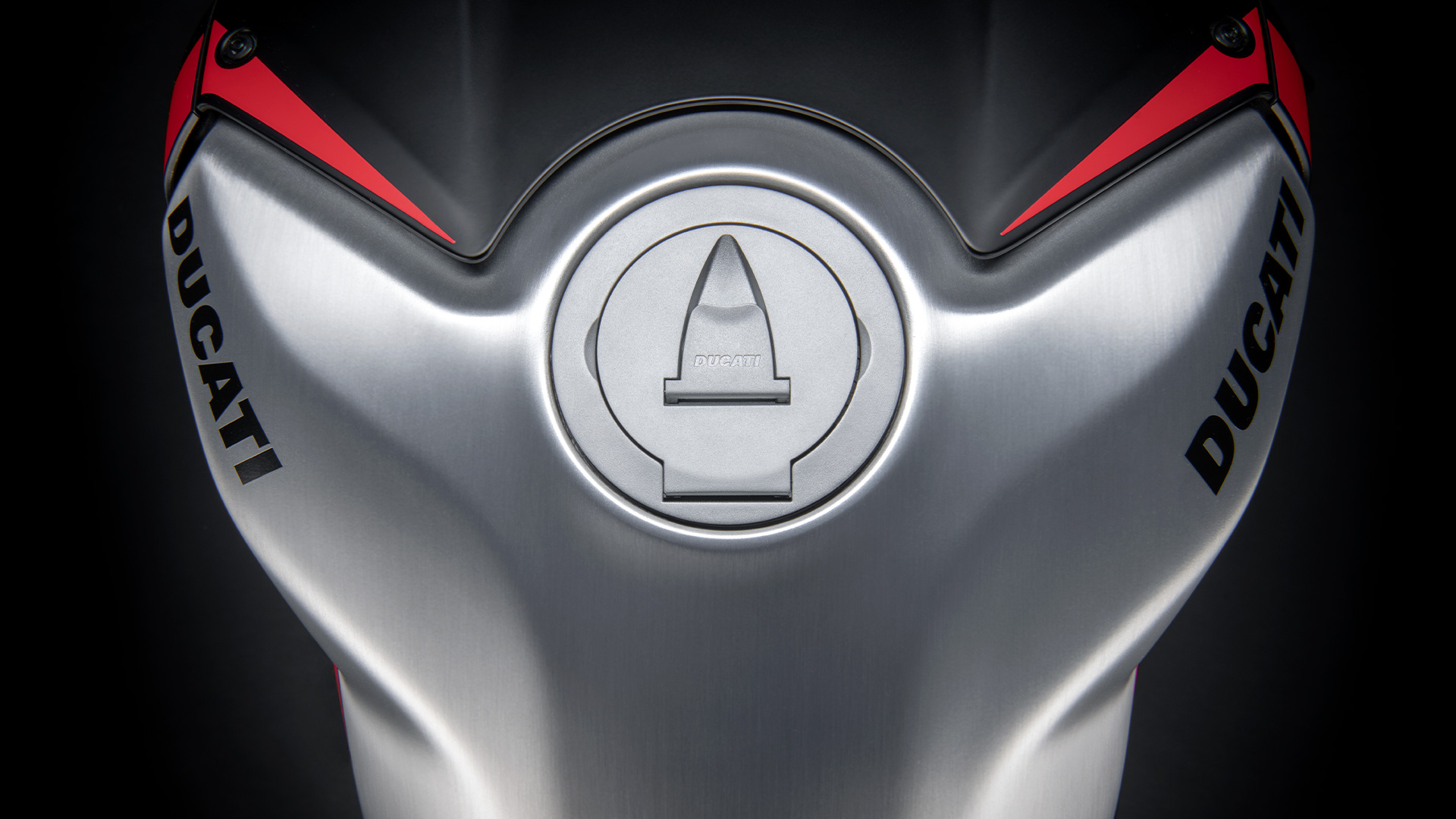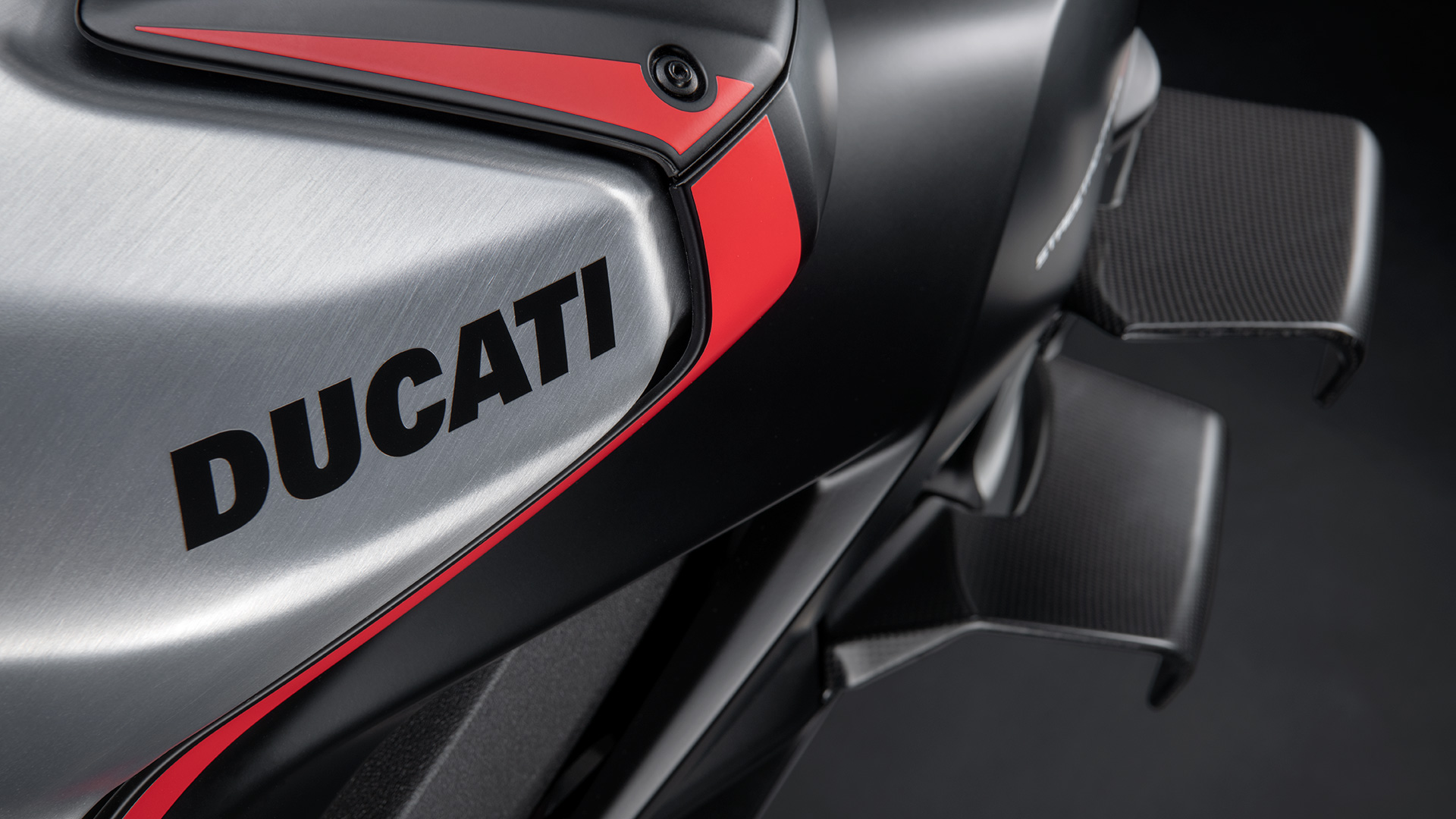 杜卡迪从MotoGP和SBK锦标赛的季前测试中获得灵感,整流罩的哑光黑色与翼子板的哑光碳色相结合,与明亮的红色点缀和拉丝铝合金油箱形成鲜明对比。此外还设计有额外的一些细节,如车把上的编号和碳纤维定风翼上的意大利元素等。