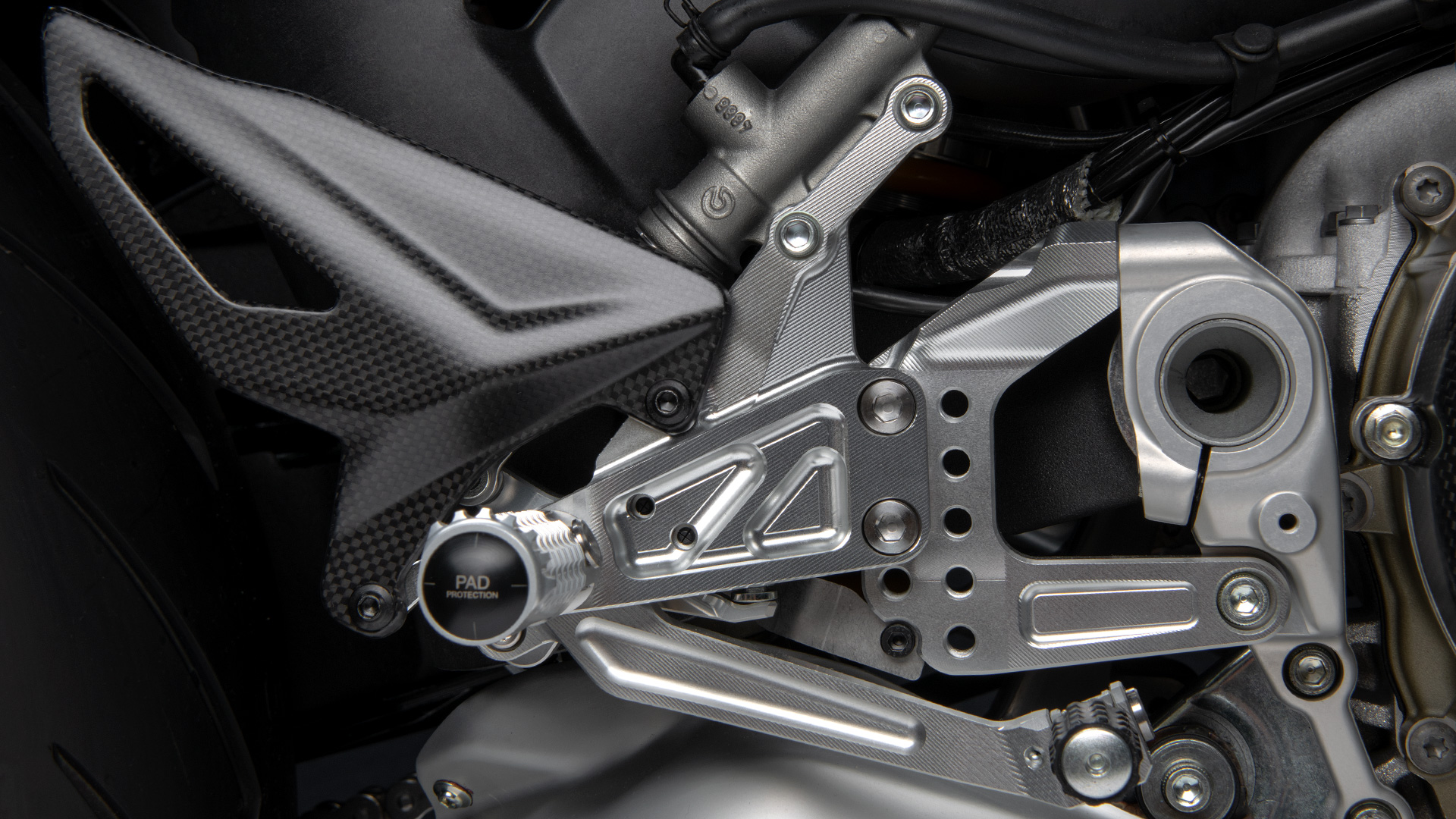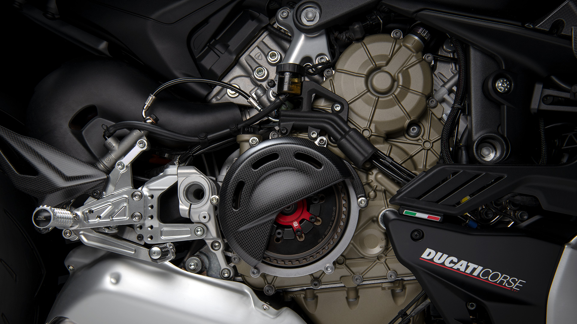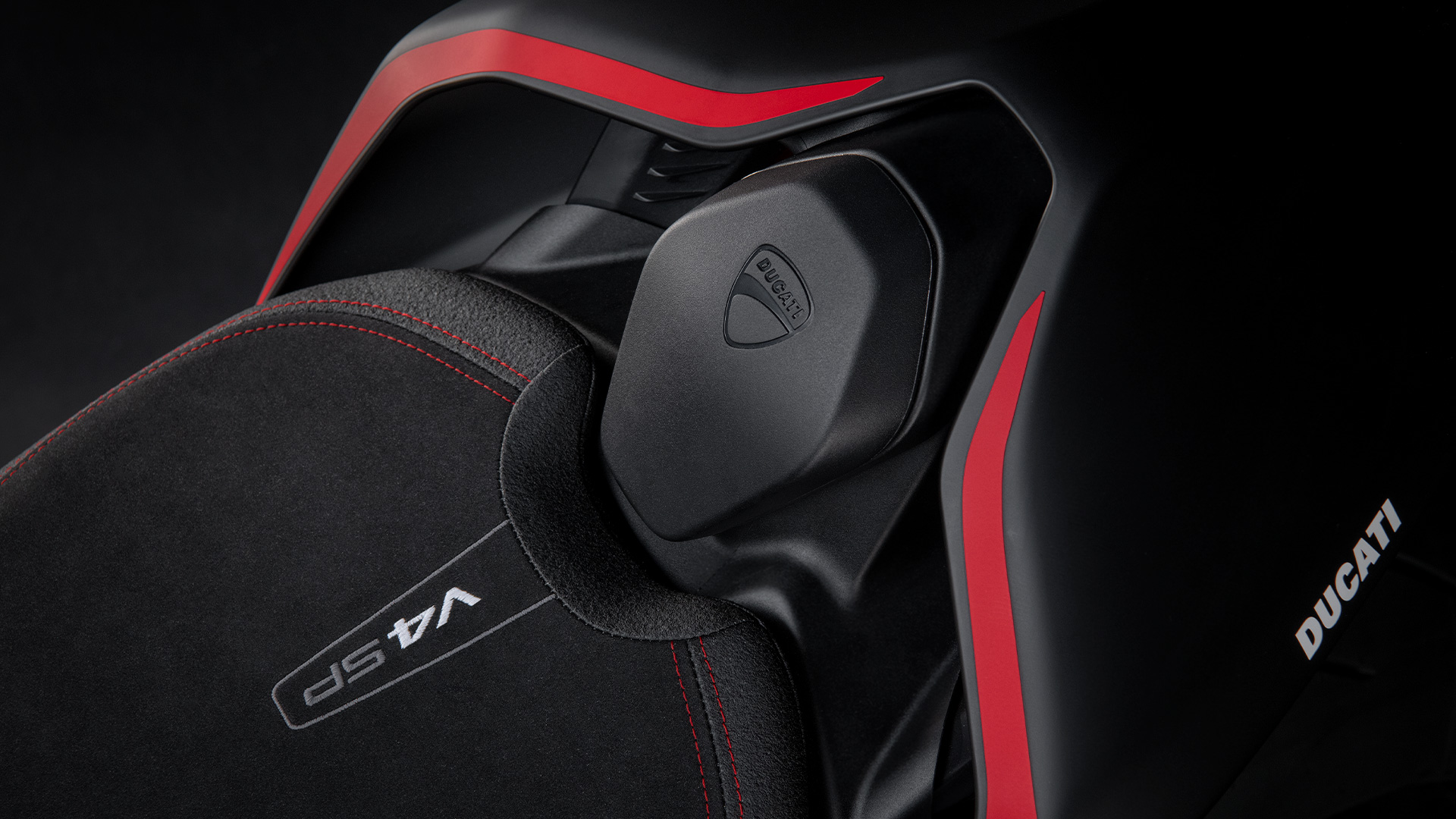 杜卡迪从MotoGP和SBK锦标赛的季前测试中获得灵感,整流罩的哑光黑色与翼子板的哑光碳色相结合,与明亮的红色点缀和拉丝铝合金油箱形成鲜明对比。此外还设计有额外的一些细节,如车把上的编号和碳纤维定风翼上的意大利元素等。