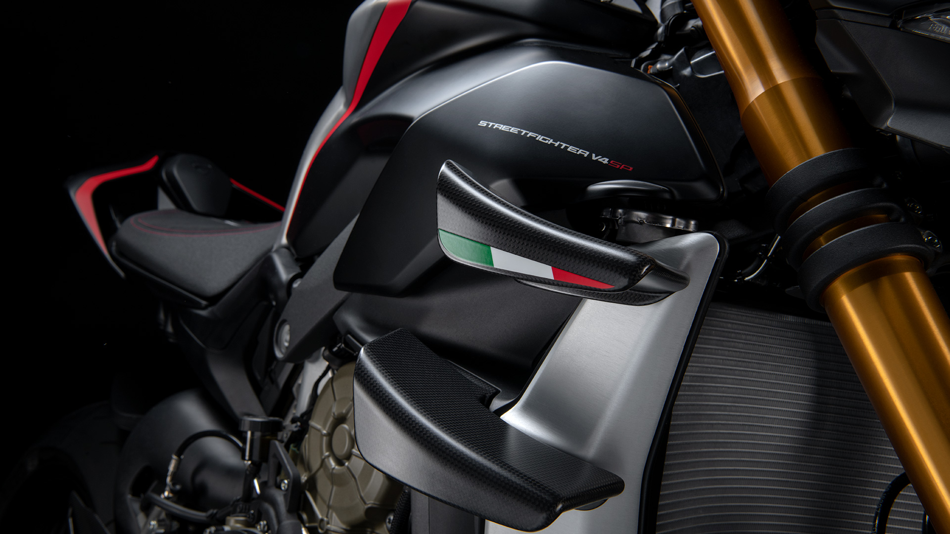 悬架方面全新街霸 Streetfighter V4 SP 配备全段可调节的金色Öhlins NIX-30前叉,全段可调节Öhlins TTX36 的后避震全部通过Öhlins Smart EC 2.0控制。